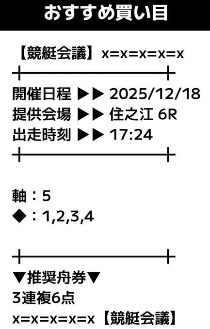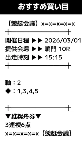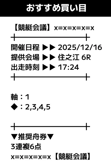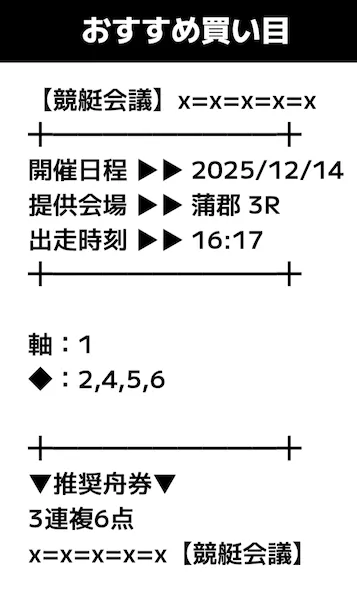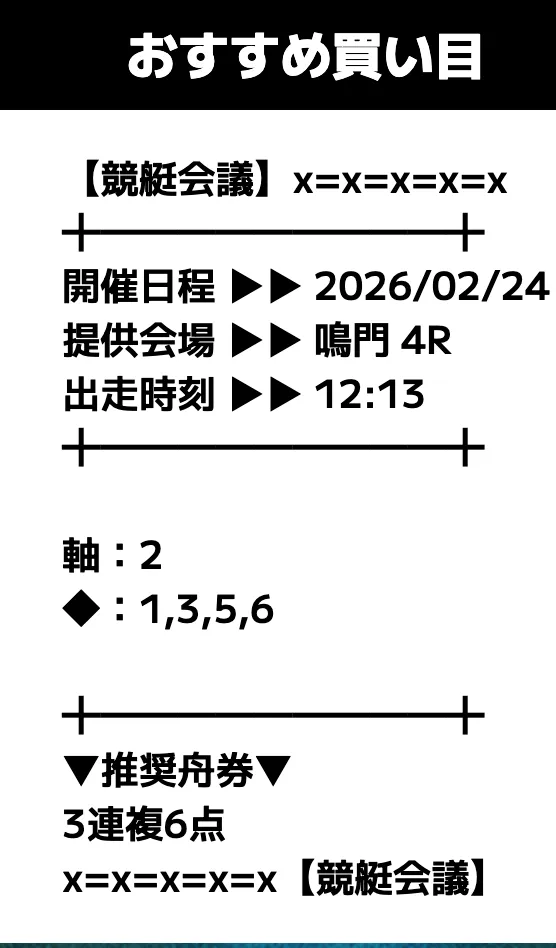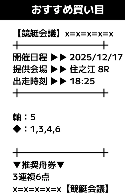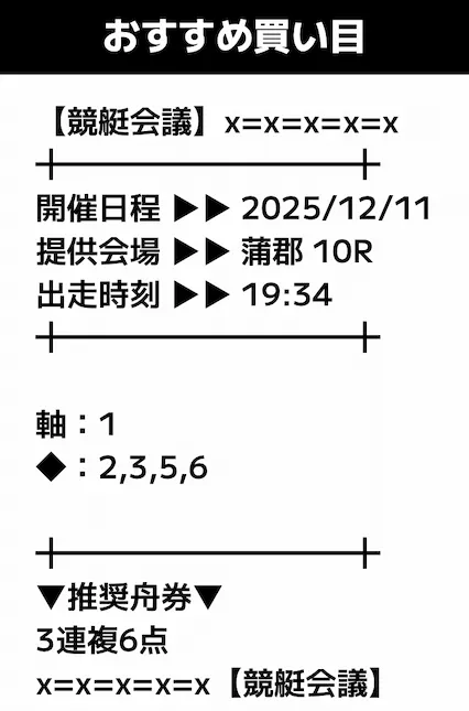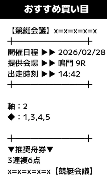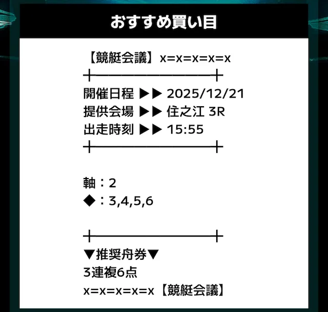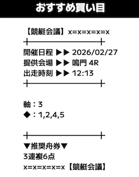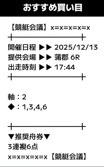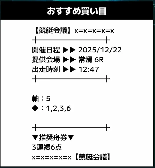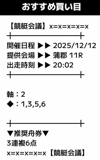 - 提供内容:3連複12レース