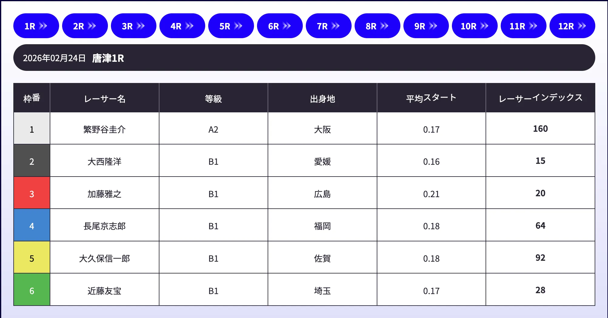 一方で、競艇会議は12レース全て閲覧することが可能です。