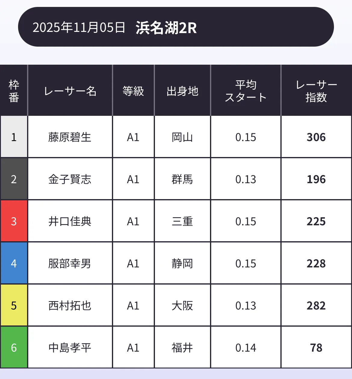 レーサー指数は、過去の成績やスタートタイミングを元にAIが数値化した「選手の実力指標」です。つまり「その日・そのレースの勝敗を予測するデータ」ではなく、あくまで参考データのひとつという位置づけになります。