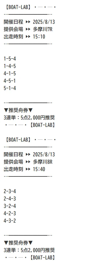 | 多摩川8R【ボートラボの有料情報】 | 内容 |
