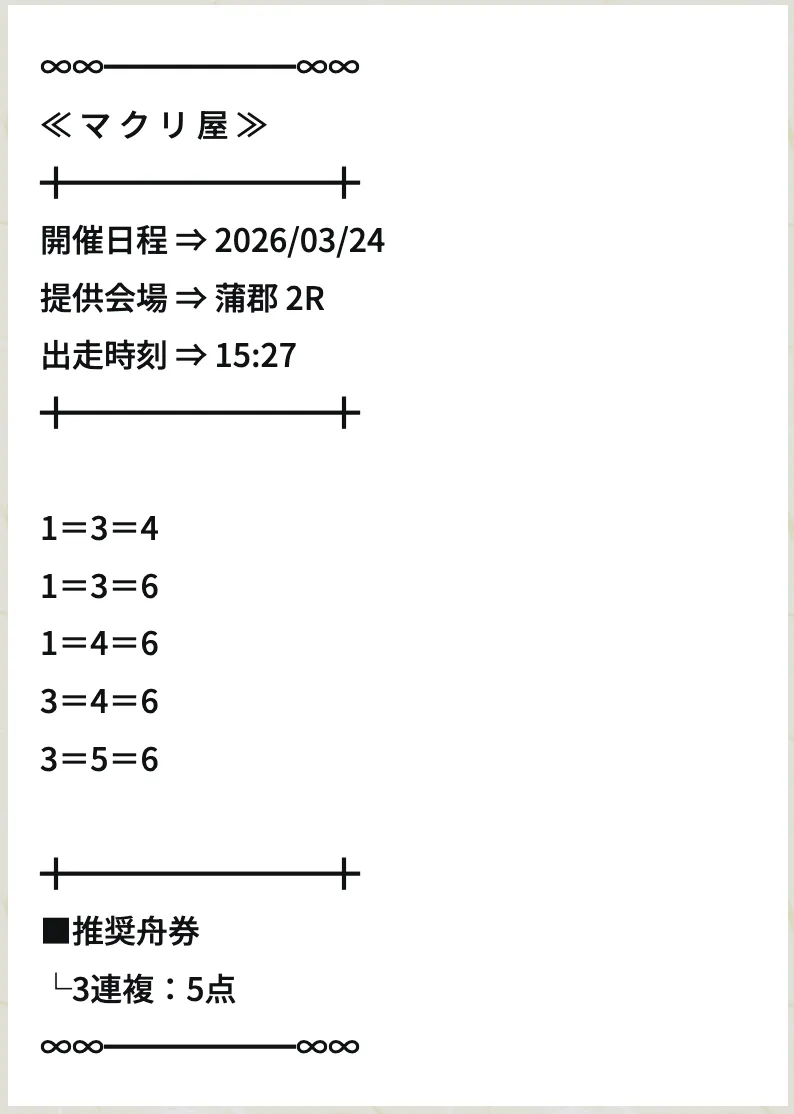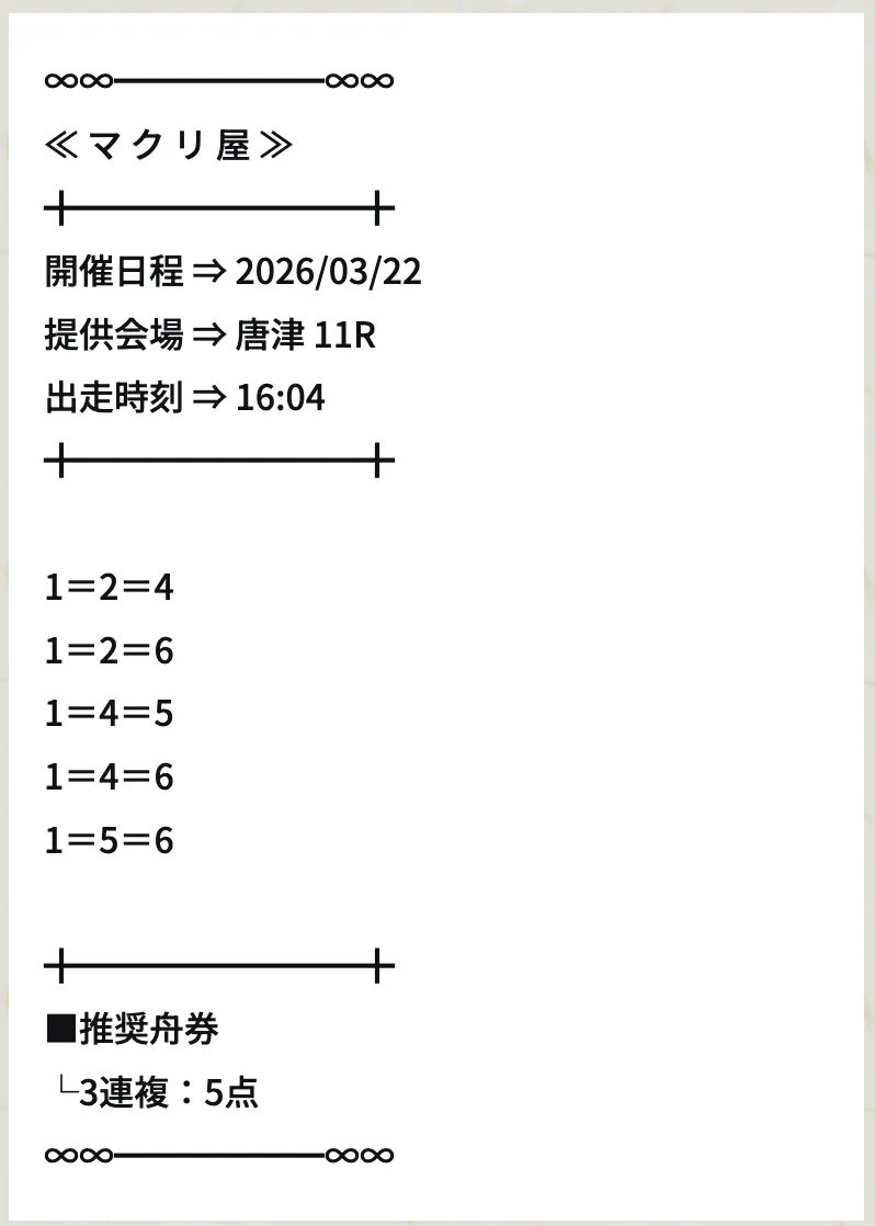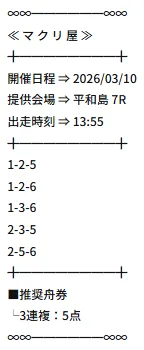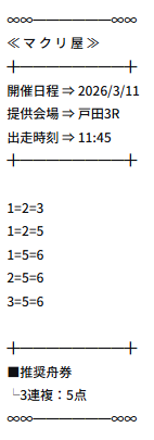 | 3月10日『マクリの第二章』【マクリ屋の有料予想】 | |