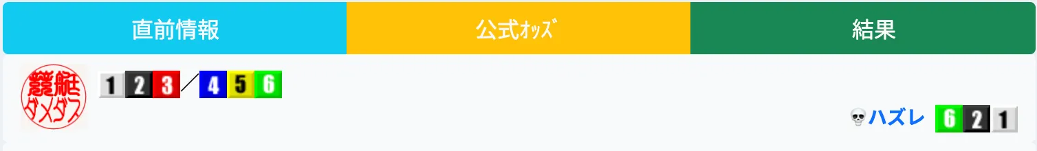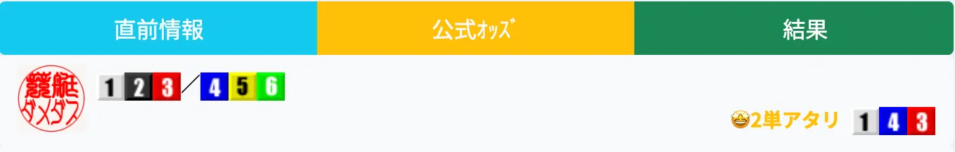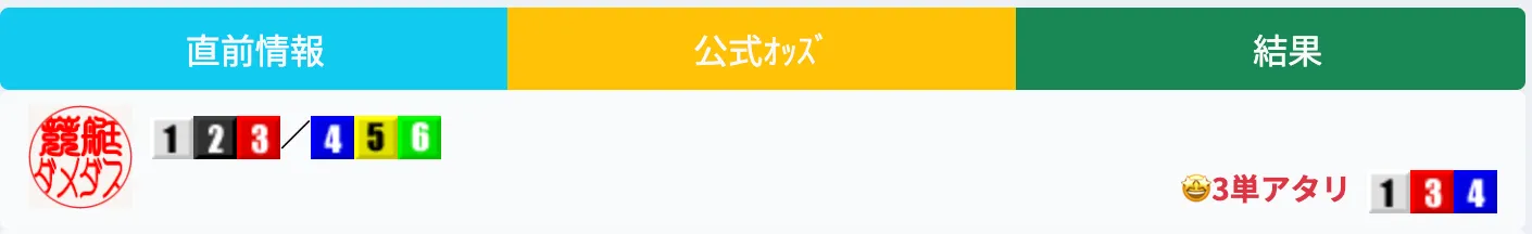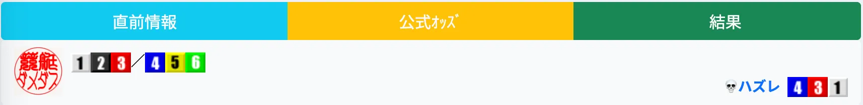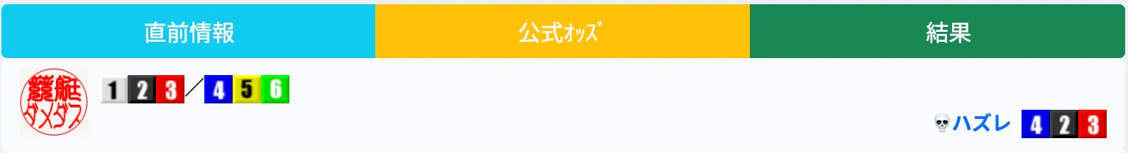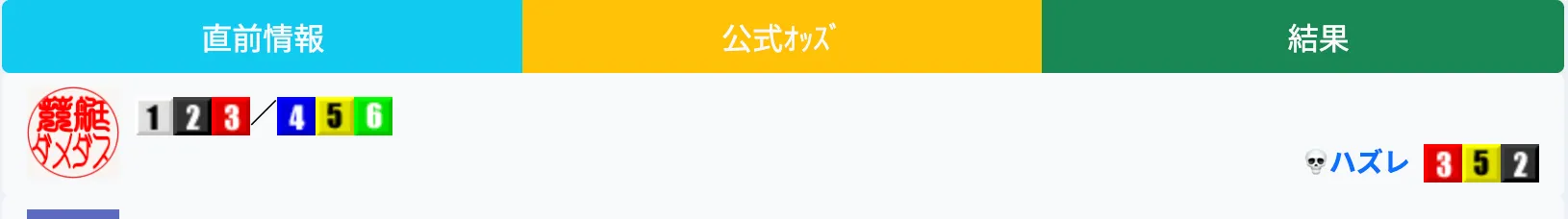 競艇ダメダスの無料予想は、基本的に全レースにおいて「3連単ボックス」を提供しています。