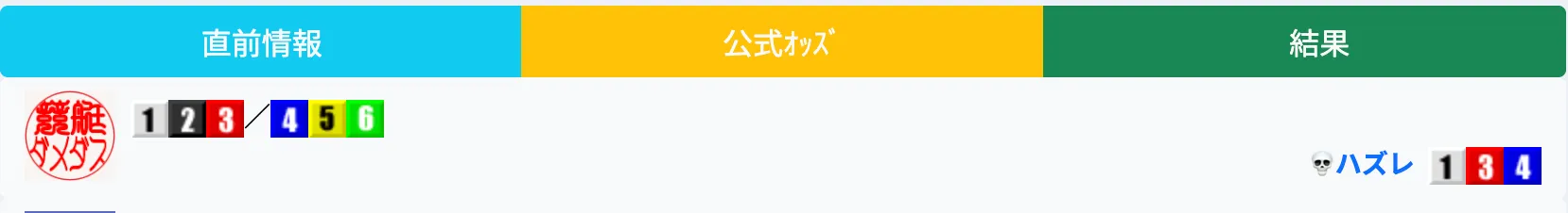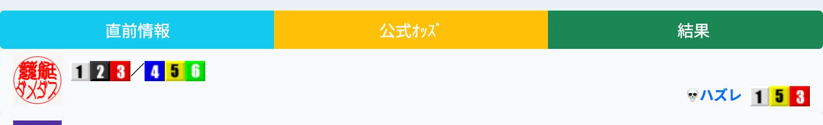 ダメダスに並んでいる買い目は、あくまで「一般の競艇ファン」が投稿したものです。