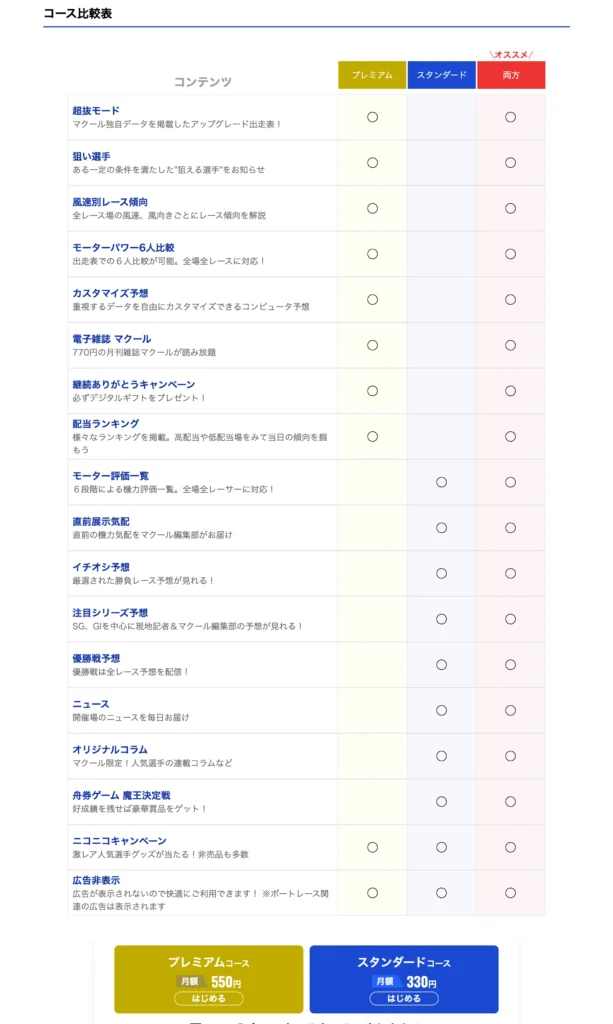 一部のニュースや出走表は無料で閲覧可能ですが、マクールの分析データや予想機能をフル活用するためには、有料コースへの登録が不可欠です。
