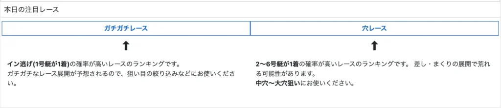 ガチガチレース予想は、インコースが逃げ切る確率が高いレースをランキング形式にしたものです。