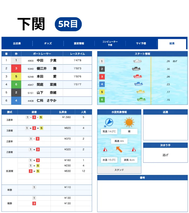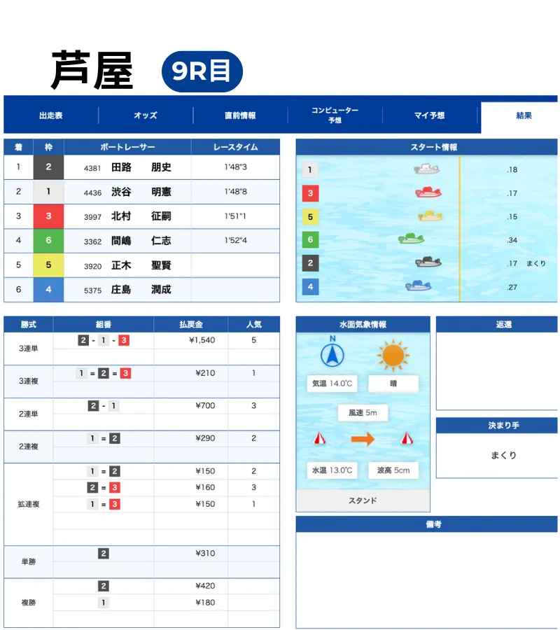 ※結果データは、BOATRACE 公式結果を元に確認しています。